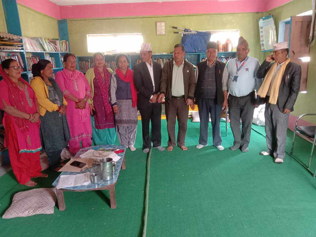 समितिको अध्यक्ष केशरजङ्ग एम.सी. सदस्यहरुमा मान बहादुर जी.सी.,रमा परियार, जमुना पोख्रेल ,मञ्जु एम.सी.(चन्दादाता),मिन बहादुर खत्री (वडा प्रतिनिधि),धनिराम जैशी (गा. पा. मनोनित) वसन्ता थापा (शिक्षक प्रतिनिधि) र सदस्य सचिव खोडस बहादुर के.सी.(प्रधानाध्यापक) रहनु भएको छ।