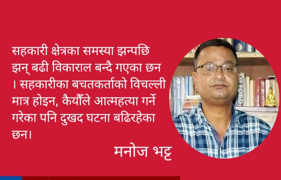 सहकारी क्षेत्रका समस्या झन्पछि झन् बढी विकाराल बन्दै गएका छन । सहकारीका बचतकर्ताको विचल्ली मात्र होइन, कैयौँले आत्महत्या गर्ने गरेका पनि दुखद घटना बढिरहेका छन । सहकारीका सञ्चालकले बचतकर्ताको जम्मा पुँजीमाथि रजाइँ गर्ने गरेका छन् । सहकारीको रकम ठगी गर्नेलाई राजनीतिक क्षेत्रबाट संरक्षण गर्ने मात्र होइन, स्वयम्मा सहकारीका सञ्चालक नै बढीजसो सत्ताधारी पार्टीका मन्त्री, सांसद, नेताकार्यकर्ता रहेका छन् । सहकारीको करोडौँ रुपैयाँ ठगी गरेको बहालवाला गृहमन्त्रीमाथि आरोप लागेको छ । त्यसबाट सहकारी रकम ठगी र अपचलनमा राजनीतिक संल्गनता तथा संरक्षणलाई देखाउँछ ।
