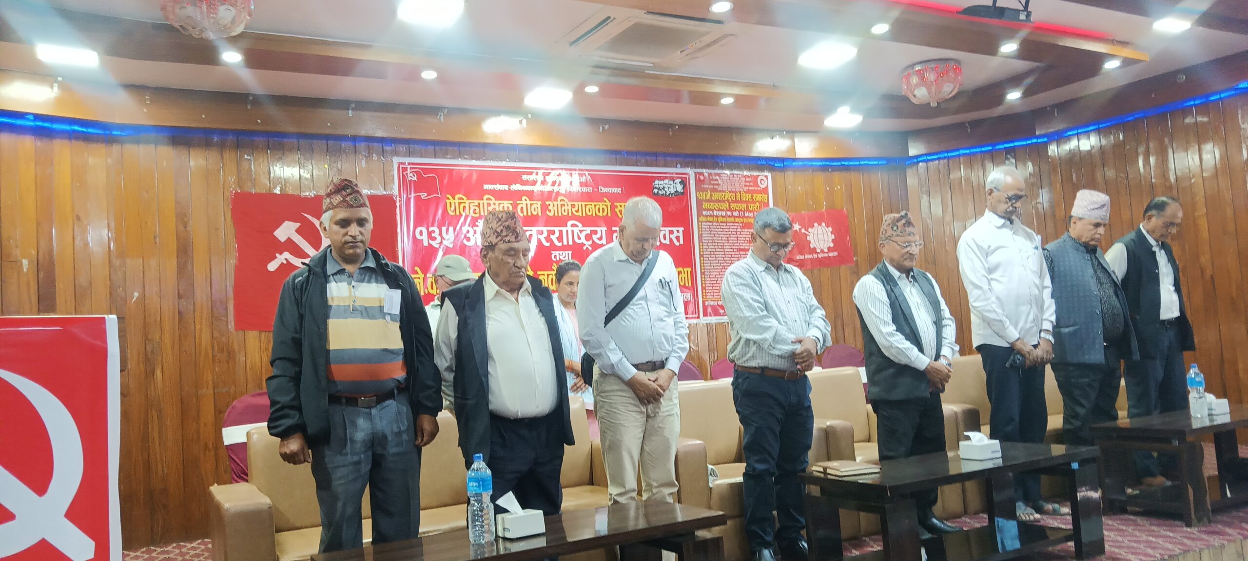 मसालले १३५ औं अन्तर्राष्ट्रिय मजदुर दिवसको अवसर पारेर आज लेनिनको जन्म शताब्दी सम्बन्धी एक वर्षे कार्यक्रम, नेकपा स्थापनाको हीरक जयन्ती तथा पार्टीको नवौं महाधिवेशनको सन्देश दिन देशब्यापी सभा गरेको हो ।
