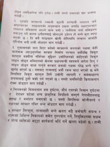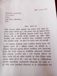 २०८१ साउन १३ गते आइतबार प्रमुख जिल्ला अधिकारीमार्फत उनीहरूले सो ज्ञापन बुझाएका हुन् ।