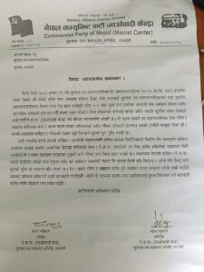 साथै दोसिलाइ कारबाही र पीडितलाई न्याय दिन समेत माओबादि केन्द्र बुटवल उपमहानगर पलिकाका अध्यक्ष महेन्द्र भुसाल र सचिब सागर न्यौपाने द्वारा हस्ताक्षर गरिएको वक्तव्यमा उल्लेख गरिएको छ।