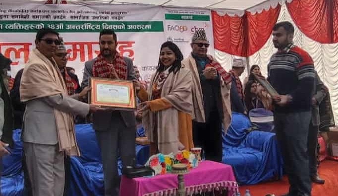 प्यूठान । झिमरुक पोष्टकर्मी जुमान सिंह के.सी. सम्मानित हुनुभएको छ । ३४ औं अपागंता दिवसको अवसरमा आम संञ्चार माध्यमवाट अपागंताका सवालहरुलाई उजागर गर्न योगदान गरेकोमा राष्ट्रिय अपागं महासंघ नेपालले सम्मान गरेको हो ।