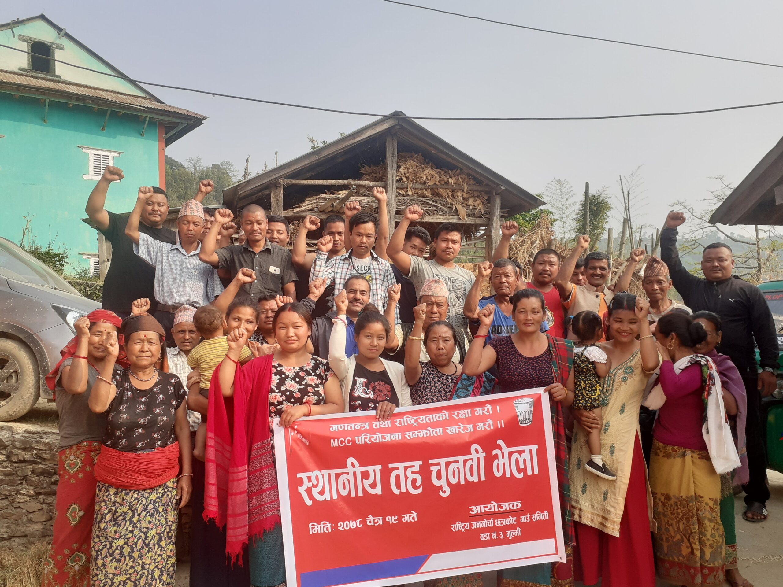 राष्ट्रिय जनमोर्चा गुल्मी जिल्लाको छत्रकोट गाउंपालिका वडानं तिनको चुनावी भेला सम्पन्न सम्पन्न भएको छ राजमो नेता गुमान सिंह पुनको संचालनमा अगाडि बढेको कार्यक्रमको अध्यक्षता राजमो छत्रकोट ३ का अध्यक्ष स्यामलाल पन्तले गर्नुभएको थियो भने स्वागत भासण चम्पा पुनले गर्नुभएको थियो।