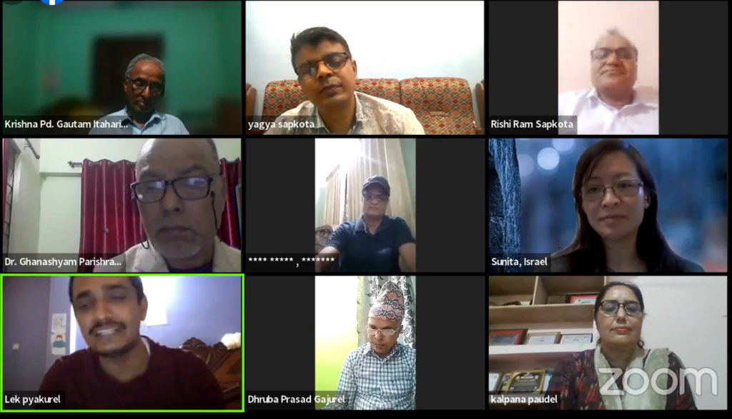 विश्व नेपाली साहित्य महासङ्घ नेपाल शाखाद्वारा ०९ गते वैशाख/शनिवार नियमित सिर्जना वाचन, स्रष्टा किशन पौडेलको लघुकथा सङ्ग्रह ‘खुसी’माथि समिक्षा र रुपन्देही नयाँ शाखा घोषणा भर्चुअल्ली भव्य रुपमा सम्पन्न गर्यो ।