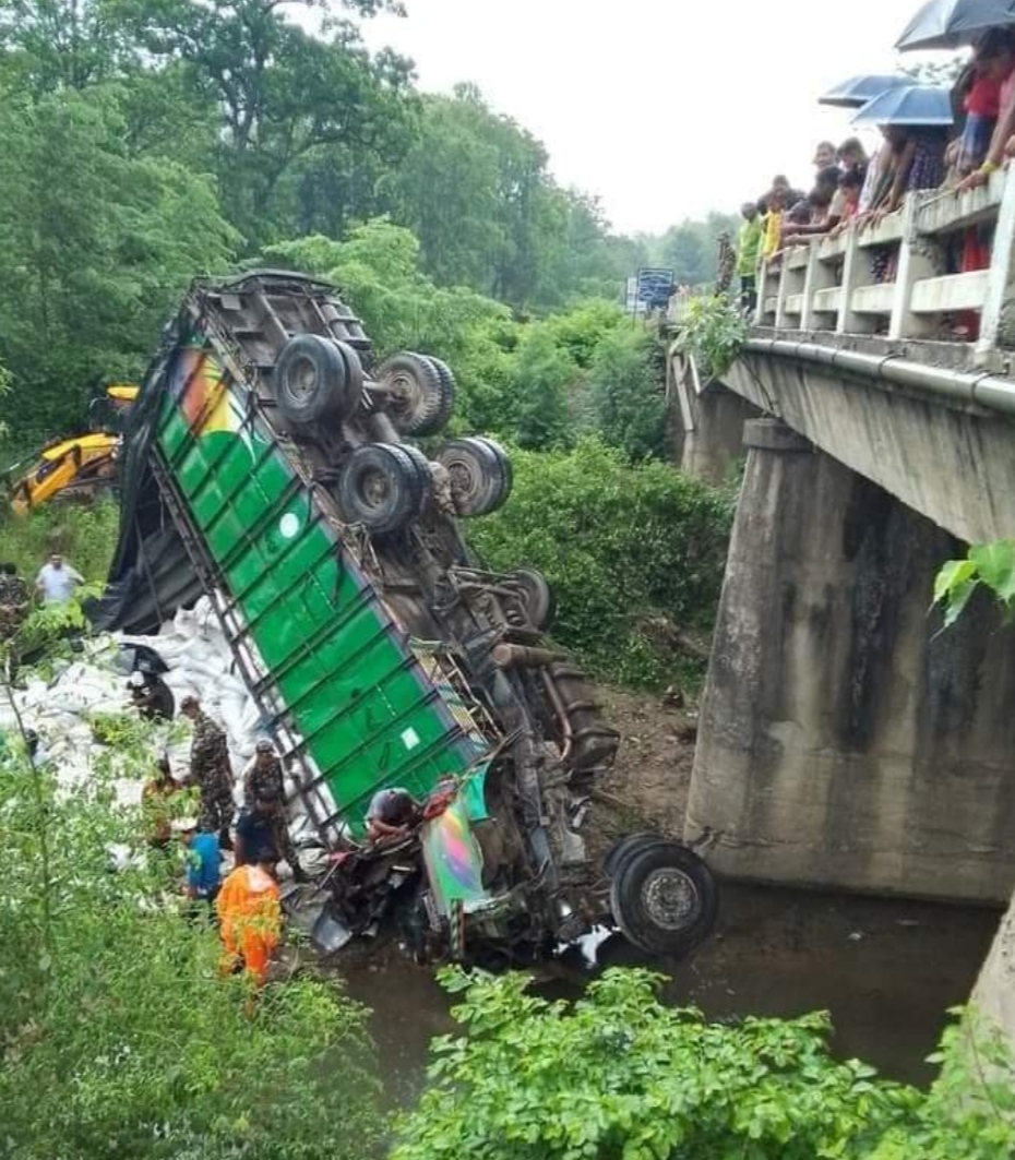 भैरहवाबाट नेपालगजतर्फ आउँदै गरेको मलखाद बोकेको लु १ ख ८६०९ नम्बरको ट्रक शिवखोला पुलबाट तल खस्दा ट्रकका चालक भित्रै फसेका छन् । सहचालक सकुशल रहेको र चालकको उद्धारको प्रयास भइरहेको प्रहरीले जनाएको छ
