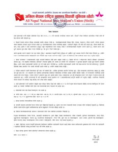 “हाम्रो युनियनको सातौँ केन्द्रीय समितिको बैठक यही साउन ५ र ६ गते पाल्पाको तानसेनमा सम्पन्न भयो । बैठकले गरेका निर्णयहरू सार्वजनिक गर्नका लागि यो प्रेसवक्तव्य जारी गरिएको छ ।