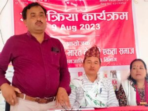 अन्तक्रिया कार्यक्रममा मन्तव्य राख्दै प्रमुख अतिथि बेद बहादुर कार्कीले आदिवासी जनजाति दिवशको शुभ कामना दिदै भन्नुयो विश्वमा आजपनि विभिन्न बाहानामा राज्य र सासकहरुले शोषण गरिरहेको र टाठावाठा मुठिभर दलाल पुँजीपति वर्गले आदिवासी जनजातिहरु माथि अन्याय अत्याचार विभेद थिचोमिचो गरिरहेको बताउनु भयो।राज्यले आजपनि आदिवासी जनजातिको आफ्नो भाषा संस्कृति परम्परा र पहिचान लाई संरक्षण गर्दै संगठित गर्न नसक्नु विडम्बना भएको बताउँदै सम्पूर्ण आदिबासी जनजाती पिछडिएका दलित,अल्पसंख्यक एक हुन अनुरोध गर्दै पश्चिम भारत क्षत्रिय समता सँयोजक नेता प्रकाश जनाला बोल्नु भएको थियो। अन्य वक्ताहरु रमकला काउछा, हरिसिंह काउछा, निखिल रावत, बिना काउछा बोल्ने क्रममा वर्गसंघर्षको आबस्यकता आजको अनिवार्य सर्त हो, सुदुर दुर्गम अँध्यारा गाउबस्तिमा बिभिन्न जातजाति र धर्म-कर्मको बाहानामा सानो ठुलो भनेर समाज बिभेद छ भने सहरबजारमा गरिव र धनि बिच बिभेद रहेकोले यस्ता खाले बिभेद को अन्त्य गर्न सबै संगठित भै संघर्ष गर्नु पर्ने बेला आयको बताउनु भयो।दुर्गा राना ले स्वागत मन्तव्य राख्नु भयको कार्यक्रमको सञ्चालन दिपेश लिम्बु ले गर्नु भयको थियो।