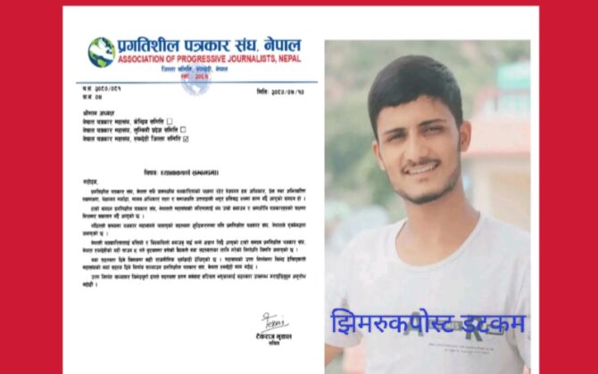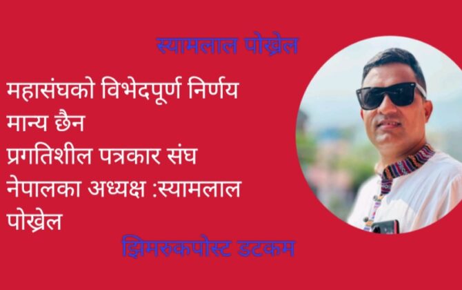 पुरा पढ्नुहोसप्रगतिशील पत्रकार संघ नेपालका केन्द्रिय अध्यक्ष स्यामलाल पोख्रेलले एउटा लामो फेसबुक स्टार्ट लेख्दै पत्रकार महासंघले गर्ने सौतेनी व्यबहारको कडा बिरोध गर्नुभएको छ।पोख्रेलले महासंघले यस्तै व्यबहार देखाए ,महासंघको विकल्प समेत खोज्ने स्थिति आउने बताउनुभएको छ।महासंघको...