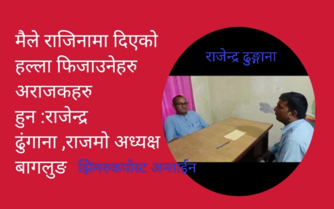 शंकर प्रसाद पोख्रेल ,बुटवल रुपन्देही राष्ट्रिय जनमोर्चाका केन्द्रीय सदस्य तथा बागलुङ जिल्ला अध्यक्ष राजेन्द्र ढुङ्गानाले आफुले राष्ट्रिय जनमोर्चा छोडेको हल्लामा कुनै सत्यता नरहेको स्पष्ट पार्नुभएको छ। उहाँले प्रगतिशील पत्रकार संघ नेपालका केन्द्रिय सदस्य शंकर...