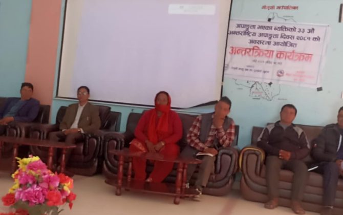 पुरा पढ्नुहोसप्युठान अपाङ्गता भएका व्यक्तिहरुको ३३ औ अन्र्तराष्ट्रिय अपाङ्ग दिवस “समावेशि तथा दिगाे भविष्यकाे पूर्वाधार, अपाङ्गता भएका व्यक्त्तिहरूकाे प्रवल नेतृत्व यसकाे आधार” भन्ने नारा साथ आज प्युठानका विभिन्न स्थानीय तहमा मनाइएको छ। गौमुखी गाउँपालिकाको सभाहलमा अपाङ्गताको...