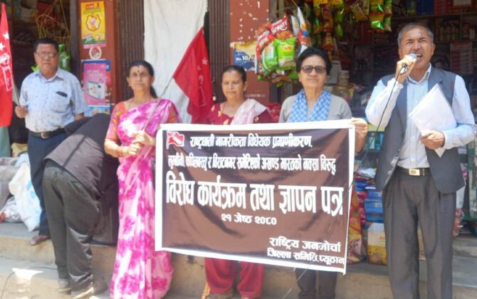 पुरा पढ्नुहोसजेष्ठ २१, प्युठान कुलचन्द्र विस्वकर्मा र्राष्ट्रिय जनमोर्चा प्युठानद्वारा प्रधानमन्त्रीलाई ज्ञापनपत्र पेश गरेको छ। आइतबार जिल्ला प्रशासन कार्यालय प्युठानका निमित्त प्रमुख जिल्ला अधिकारी मेघराज सोनि मार्फत प्रधानमन्त्रीलाई पेश गरेको हो। राजमोका जिल्ला अध्यक्ष ज्ञामुराम न्यौपानेको नेतृत्वमा गएको एक...