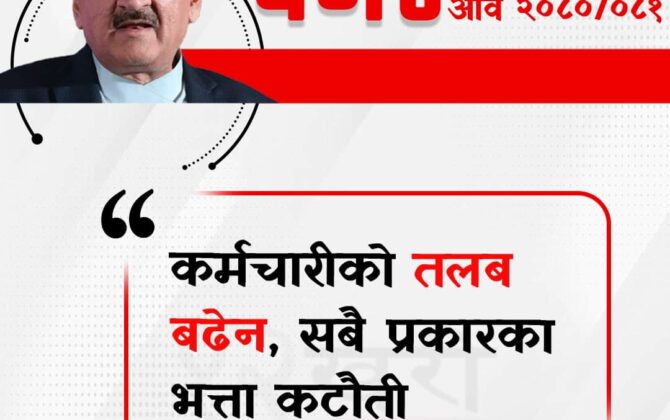 पुरा पढ्नुहोसआगामी आर्थिक वर्षका लागि सरकारले १७ खर्ब ५१ अर्ब ३१ करोड रुपैयाँ बजेट विनियोजन गरेको छ। जसमध्ये चालुतर्फ ११ खर्ब ४१ अर्ब ७८ करोड रुपैयाँ अर्थात कुल विनियोजनको ६५.२० प्रतिशत रहेको छ।यस्तै पुँजीगततर्फ १७.२५...