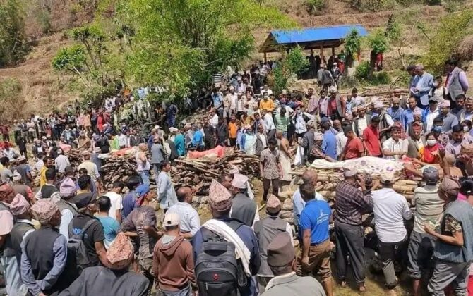 हृदयबिदारक दृश्य आगोलागिमा परि मृत्यु हुने ४ जनाको एकै घाटमा सामूहिक अन्त्यष्टि