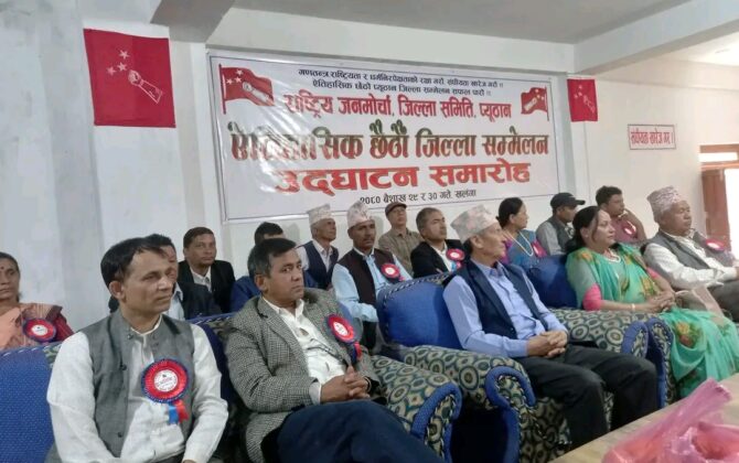 राष्ट्रिय जनमोर्चा प्युठानको छैठौं जिल्ला सम्मेलन खलंगामा चल्दै