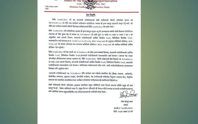 पुरा पढ्नुहोसजुमान सिंह के सी प्युठान १३ असार, मल्लरानी गाउँपालिका खलंगा प्युठानको आगामी आर्थिक वर्षको बजेट तथा कार्यक्रम गाउँसभाले पास गरेको छ । ४१ करोड २४ लाख ६८ हजार ६ सय ४ रुपियाँ बराबरको बजेट आज सोमबार...