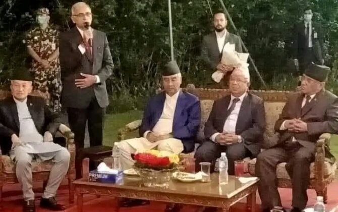 काठमाडौं । राष्ट्रिय प्रजातन्त्र पार्टीका अध्यक्ष राजेन्द्र लिङदेनले प्रधानमन्त्री शेरबहादुर देउवालगायत नेताहरु लैनचौरस्थित भारतीय दूतावासमा लहरै बसेको फोटो सेयर गर्दै ट्वीटरमा लेख्नुभएको छ, ‘नेपालको इतिहासमा आजसम्मकै सबैभन्दा कुरुप दृश्य– देशको प्रमुख र पूर्व प्रमुखहरू दूतावासको...