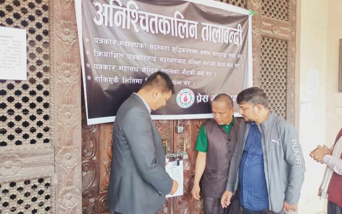 पुरा पढ्नुहोसकाठमाडौँ । प्रगतिशील पत्रकार सङ्घले नेपाल पत्रकार महासङ्घको केन्द्रीय कार्यालयमा ताल्चा लगाएको छ । महासचिव प्रकाश थापामगरको नेतृत्वमा २०८१ जेठ १५ गते सञ्चारग्रामस्थित केन्द्रीय कार्यालयमा पुगी प्रगतिशीलले ताल्चा लगाएको हो । सो अवसरमा महासङ्घको केन्द्रीय कार्यालयमा प्रगतिशील...