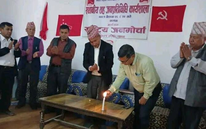 पुरा पढ्नुहोसप्युठान राष्ट्रिय जनमोर्चा प्युठानको आयोजनामा स्थानीय तहका जनप्रतिनिधिहरुको लागि दुईदिने कार्यशाला खलंगामा शनिबार सम्पन्न भएको छ। कार्याशालामा राष्ट्रिय जनमोर्चाका केन्द्रिय महासचिव मनोज भट्टले ऐन कानुन, योजना तर्जुमा, बजेट , आर्थिक स्रोतको पहिचान बिषयमा सहजीकरण गर्नु...