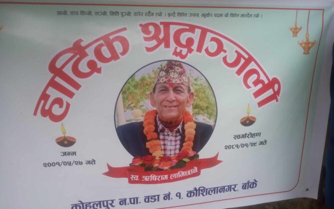 पुरा पढ्नुहोसनेपालगञ्ज । नेकपा (मसाल) का पार्टीसदस्यसमेत रहनुभएका बाँके कोहलपुर क्षेक्रका अग्रज व्यत्तित्व तथा पर्सुराम लामिछाने ,शंकर लामिछाने ,र सरद लामिछानेको आदरणीय बुवा ऋषिराम लामिछाने (कोमल) को निधन भएको छ । कोहलपुर नगरपालिका वडा नं. १...