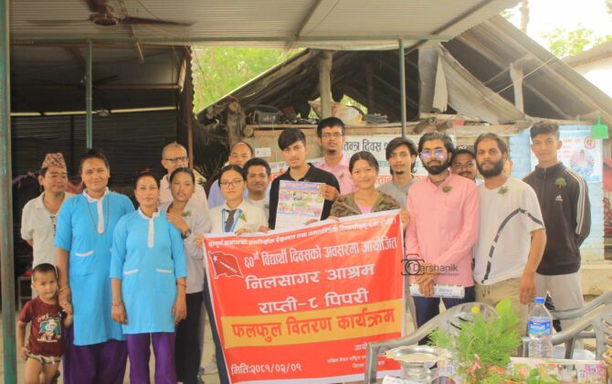 पुरा पढ्नुहोसदिनेस रैदास दाङ २०८१ जेठ १ गते मंगलबार ६० औं विद्यार्थी दिवस २०८१ को अवसरमा मङ्गलबार दाङको पिपरीमा फलफूल वितरण गरी मनाइएको छ । निलसागर आश्रम राप्ती गाउँपालिका वडा नं ८ पिपरीमा रहेका २ जना महिला...