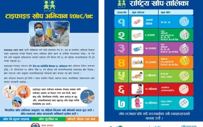 पुरा पढ्नुहोसअनुज पछाई , प्यूठान । प्यूठानमा चैत २५ देखि ३० गतेसम्म टाइफाइड रोगविरूद्धको खोप लगाइने भएको छ । जिल्लामा रहेका ९ स्थानीय तहमा उक्त खोप लगाइने स्वास्थ्य कार्यालय प्यूठानले जनाएको छ । बहुवर्षीय खोप कार्ययोजनाको...