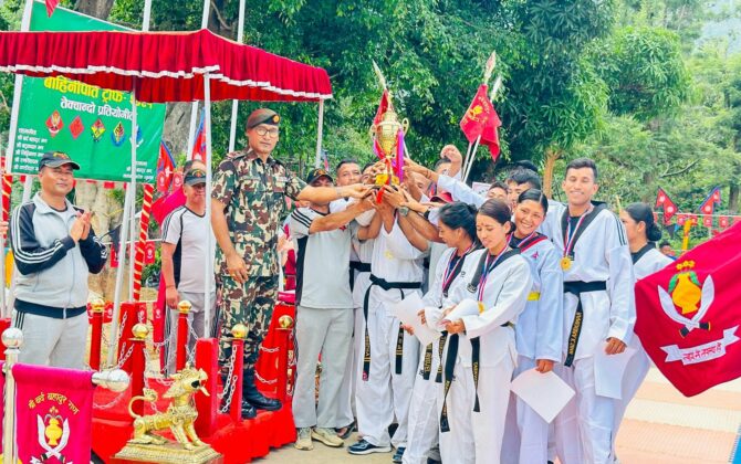 पुरा पढ्नुहोसअसार १६, प्युठान बाहिनिपति ट्रफि-२०८१ अन्तर्गत प्यूठानमा तेक्वान्दो प्रतियोगिता शुरु भएको छ । श्री बर्द बहादुर गण खलंगामा संचालन भएको प्रतियोगिताको गणपति प्रमुख सेनानी रमेश थापाले उद्घाटन गर्नुभएको हो । प्रमुख सेनानी थापाले प्रधान सेनापति कप...