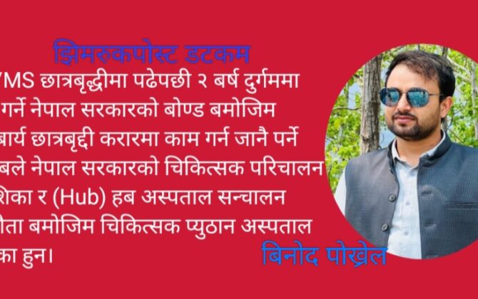 पुरा पढ्नुहोसबिनोद पोख्रेल जनस्वास्थ्यकर्मि MD/MS छात्रबृद्धीमा पढेपछी २ बर्ष दुर्गममा काम गर्ने नेपाल सरकारको बोण्ड बमोजिम अनिबार्य छात्रबृद्दी करारमा काम गर्न जानै पर्ने हिसाबले नेपाल सरकारको चिकित्सक परिचालन निर्देशिका र (Hub) हब अस्पताल सन्चालन सम्झौता बमोजिम चिकित्सक...